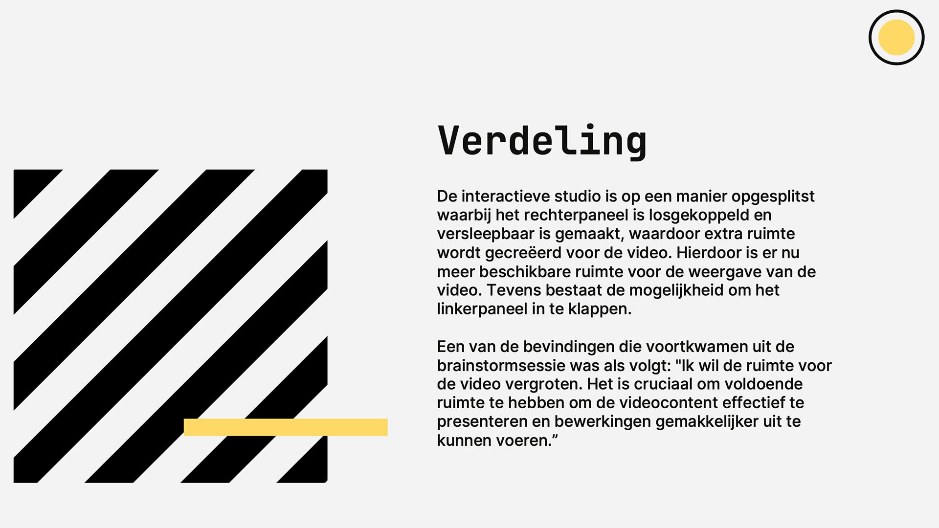 Als afstudeerstudent heb ik mij gericht op het identificeren van essentiële functionaliteiten voor een light variant van de Interactieve Studio en het ontwikkelen van effectieve implementatiemethoden. Mijn onderzoek richtte zich op het vereenvoudigen en verbeteren van de gebruikersinterface om de complexiteit van de Interactieve Studio te verminderen. Mijn doel was om een betaalbare optie te creëren voor klanten, zodat zij op een eenvoudige manier interactiviteit aan hun videomateriaal konden toevoegen. Het resultaat was de ontwikkeling van een light variant, waarmee klanten zelf interactiviteit kunnen toevoegen aan hun videomateriaal. Ik ben er trots op te vermelden dat ik voor mijn afstudeerproject een 9 heb behaald. Deze oplossing heeft de interactieve mogelijkheden aantrekkelijker gemaakt voor zowel bestaande klanten als prospects, en heeft geleid tot meer eenvoudige concepten tegen een aantrekkelijke prijs. Het was van groot belang voor de organisatie om deze light variant te ontwikkelen, omdat dit de investering voor klanten heeft verlaagd en het aanbieden van eenvoudigere concepten aantrekkelijker heeft gemaakt. Hierdoor kon de organisatie meer klanten aantrekken en de omzet verhogen, terwijl klanten meer zelfstandigheid kregen bij het toevoegen van interactiviteit aan hun videomateriaal.