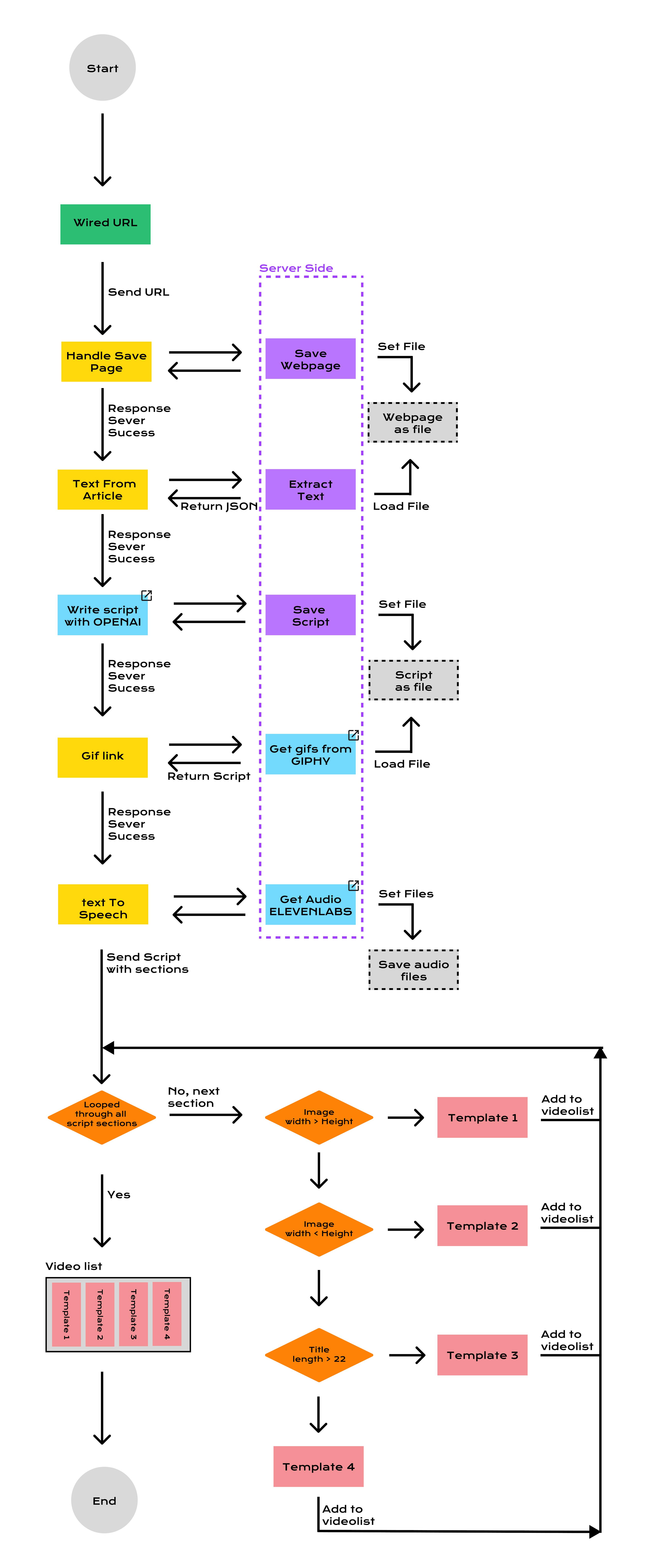 Vier templates worden gemaakt in Remotion. Het script wordt verdeeld over deze templates op basis van afbeeldingsdimensies.