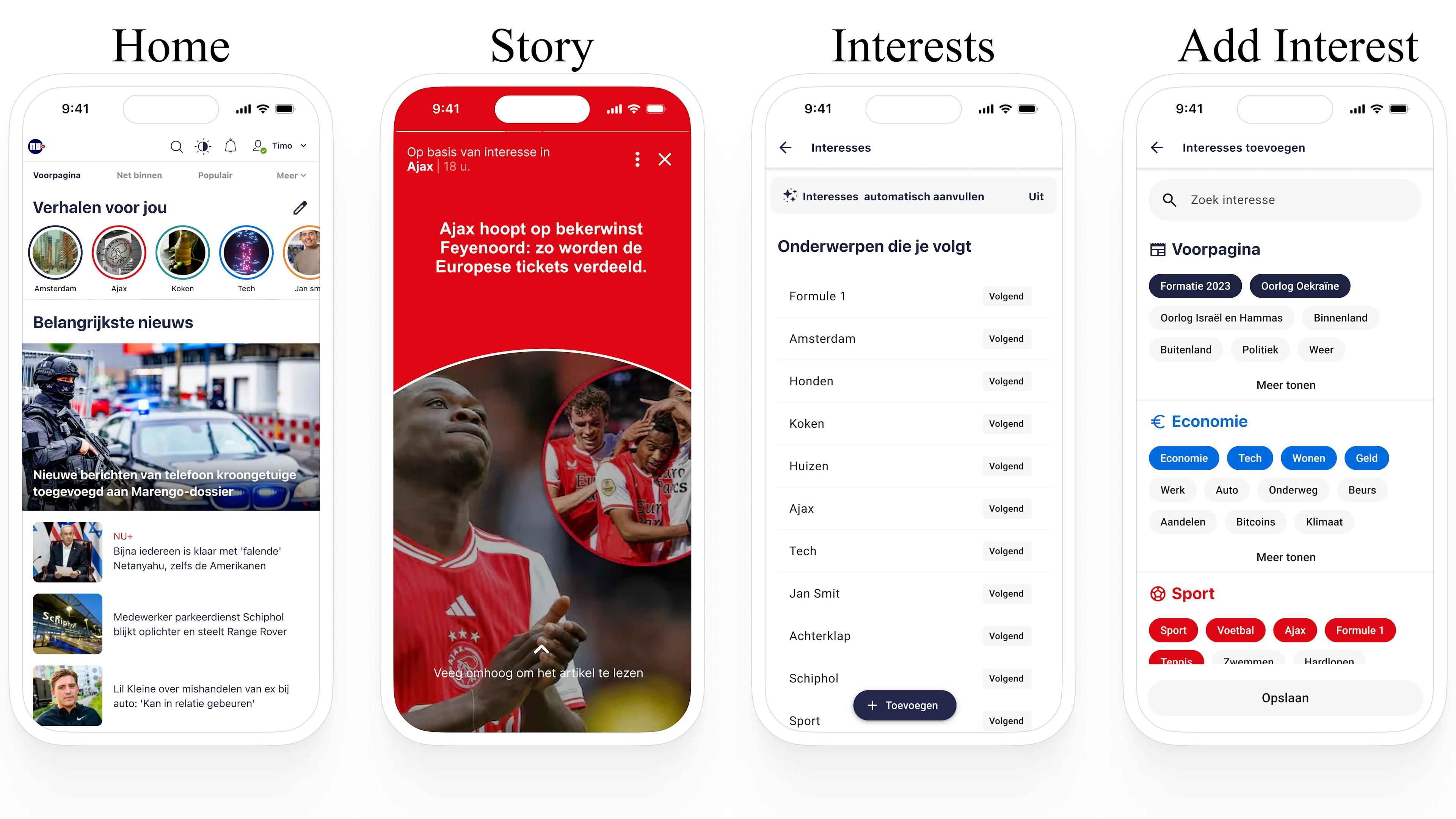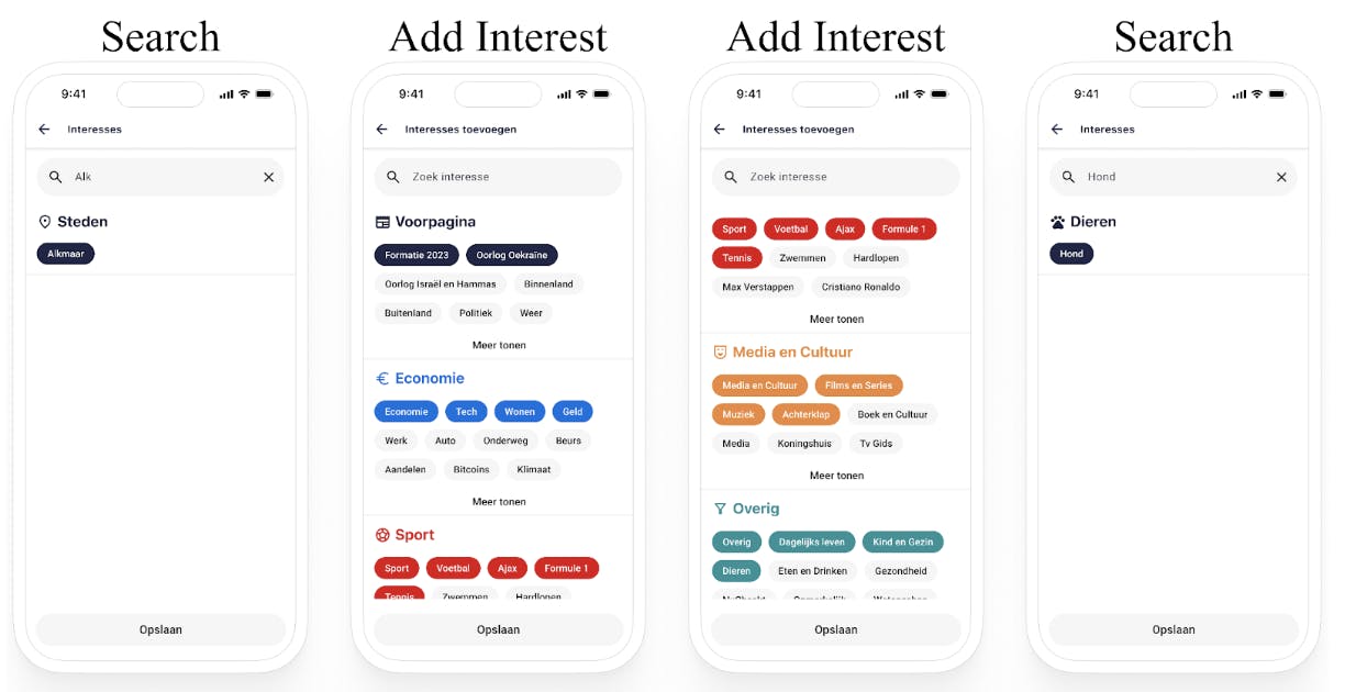 Om de personalisatie van de NU.nl app te verbeteren, introduceert dit project een functie waarmee gebruikers zich kunnen abonneren op onderwerpen van interesse. Door de onderwerpen bij te houden waarmee gebruikers zich bezighouden, kan NU.nl op maat gemaakte leestips bieden op basis van individuele voorkeuren en leesgeschiedenis. Bijvoorbeeld, als een gebruiker een artikel leest over een ongeluk in Utrecht, worden onderwerpen zoals “Politie,” “Binnenland,” en “Utrecht” geregistreerd voor toekomstige aanbevelingen.